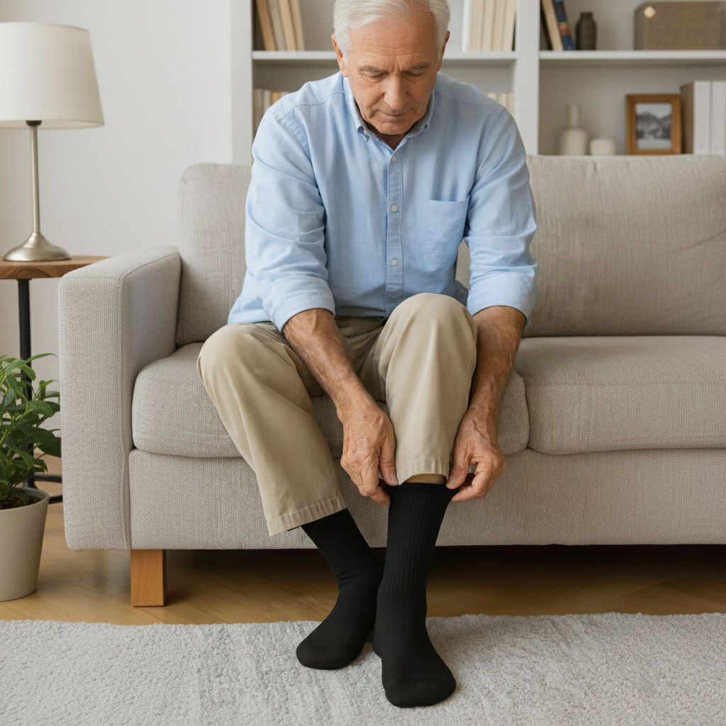 • Our Non-Binding Comfort Socks are made of 85% cotton, 12% polyamide, and 3% elastane — designed for a gentle, comfortable fit.